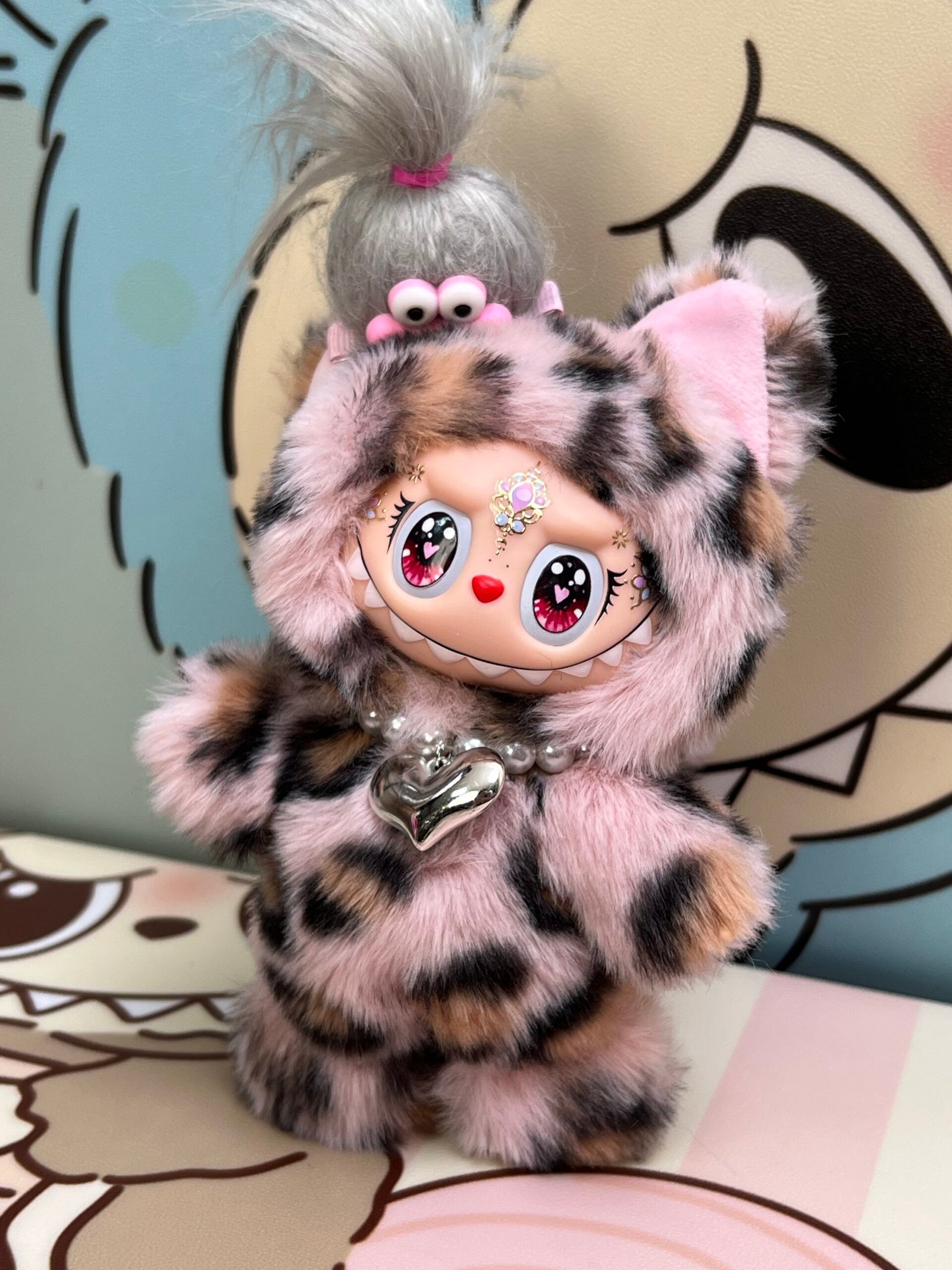 18cm Custom Pink Leopard Cat Labubu vinyl plush pendant