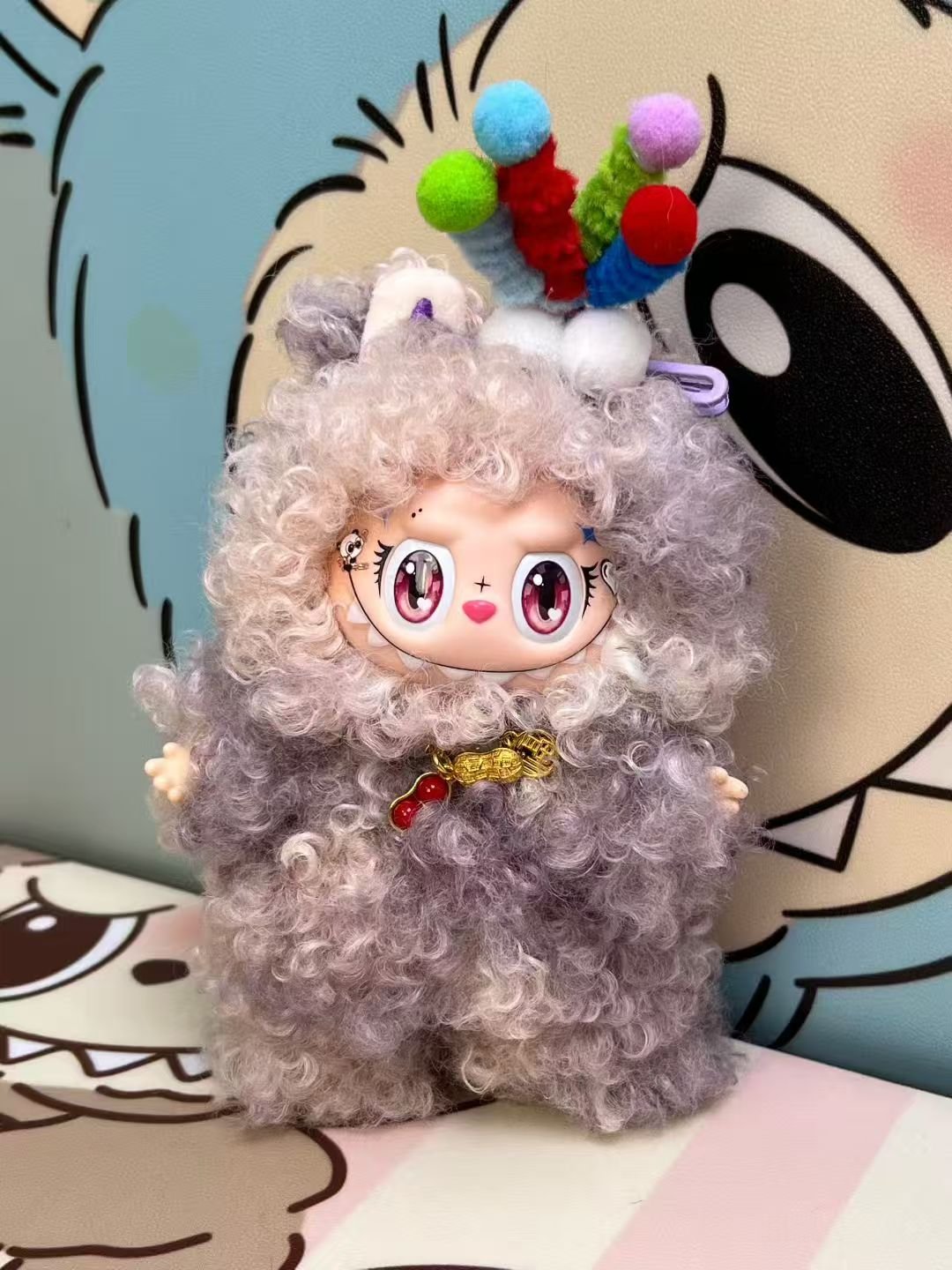 17cm Custom Purple Curly Hair Labubu vinyl plush pendant