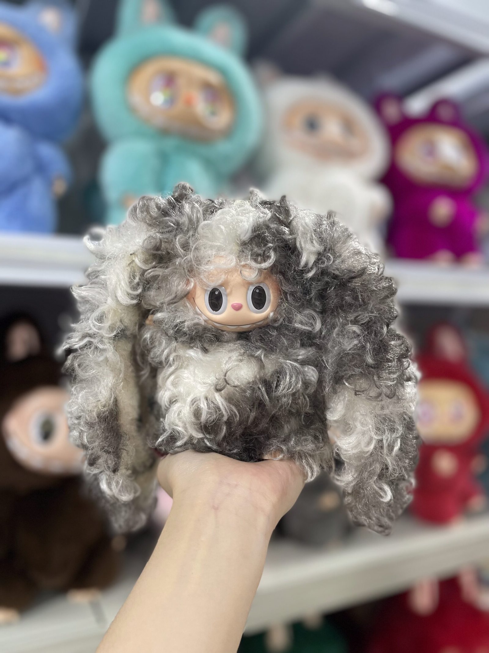 18cm Handmade Custom Curly hair with Long Ears Labubu vinyl plush pendant(all the colors)