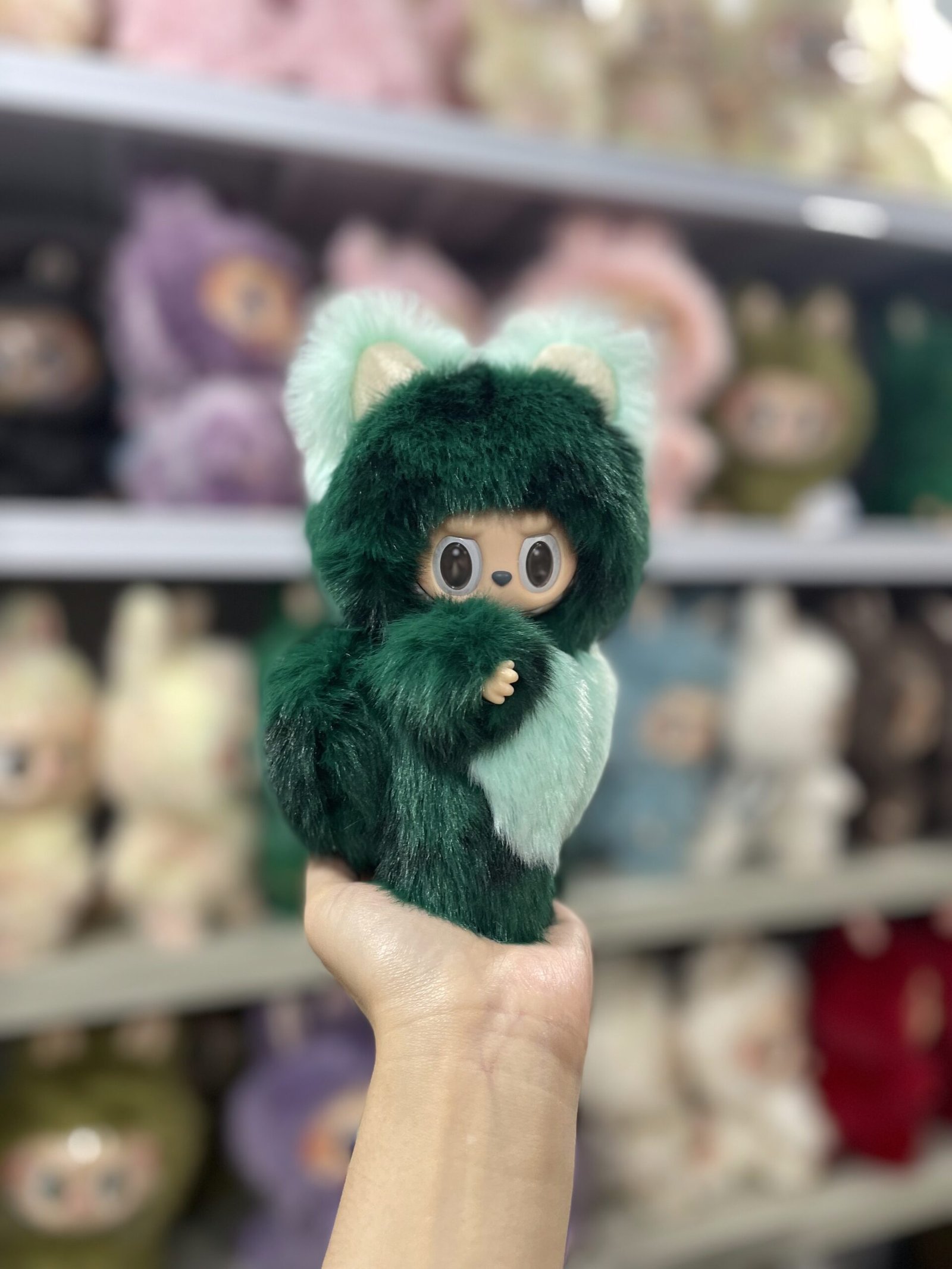 18cm Handmade Custom Forest Green Bear Labubu vinyl plush pendant