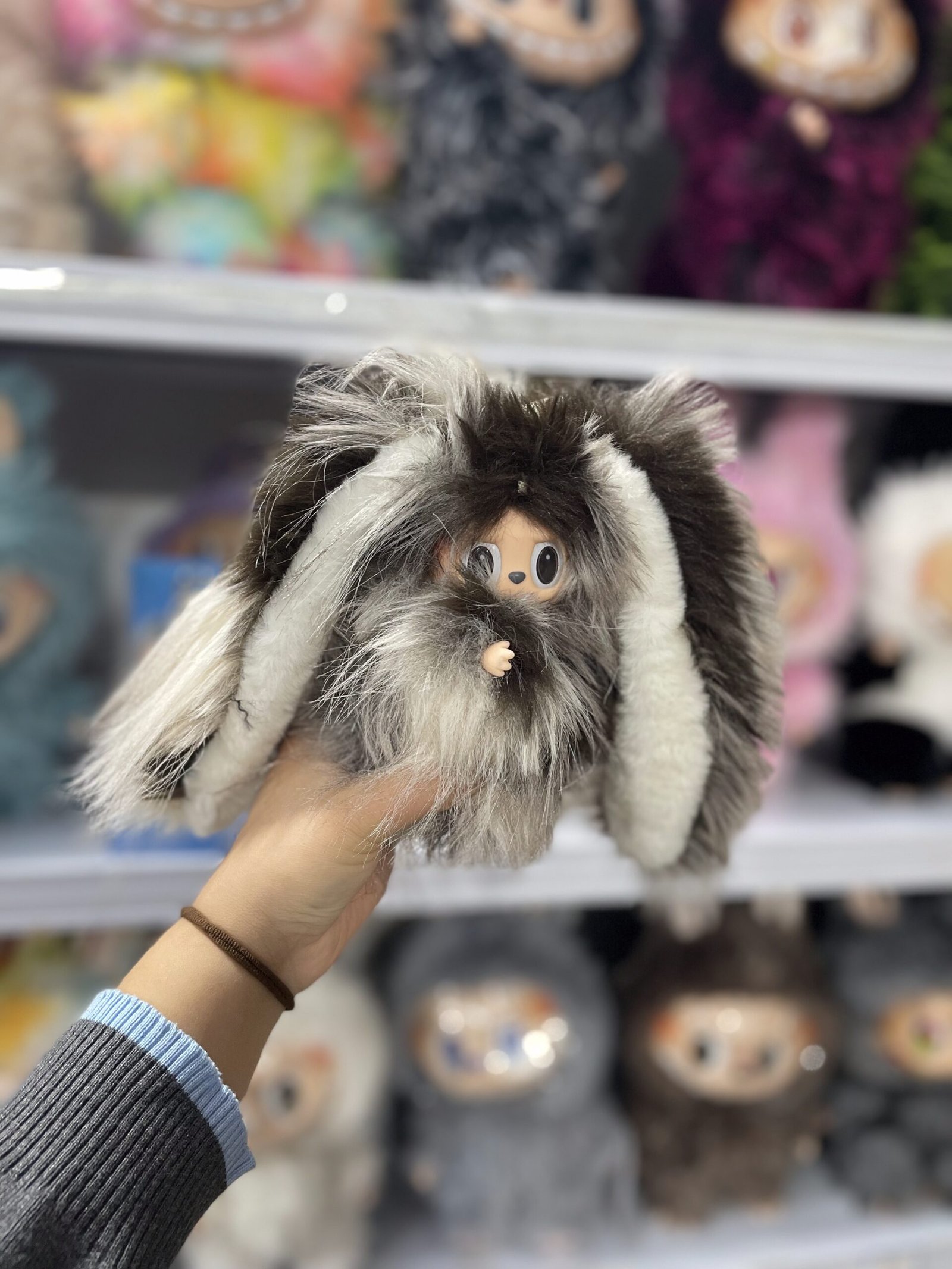 18cm Handmade Custom Magnetic Tail grey bunny Labubu vinyl plush pendant