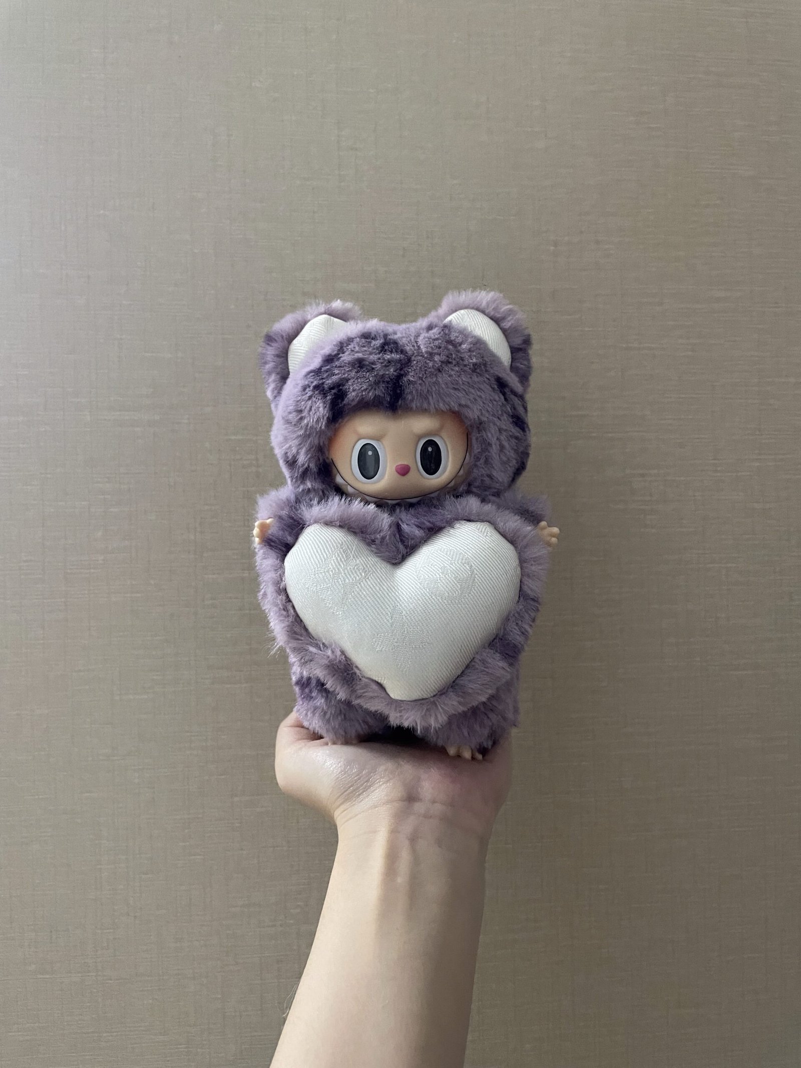 18cm Handmade Custom Purple Bear‌ with LV Magnetic Heart Labubu vinyl plush pendant18cm Handmade Custom Purple Bear‌ with LV Magnetic Heart Labubu vinyl plush pendant