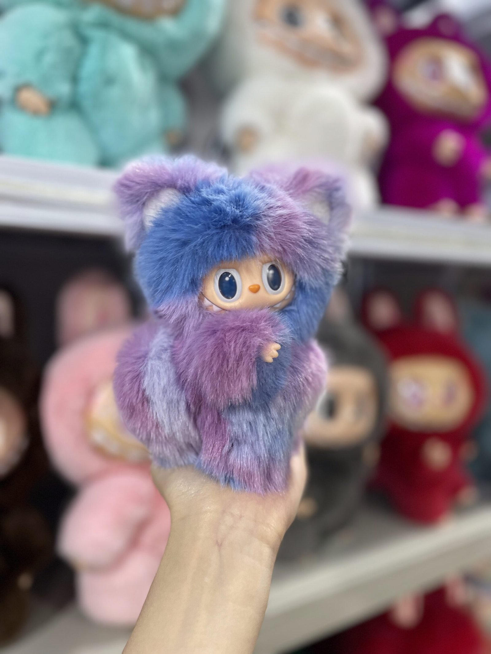 18cm Handmade Custom Purple Blue Little Velvet Treasure Labubu vinyl plush pendant
