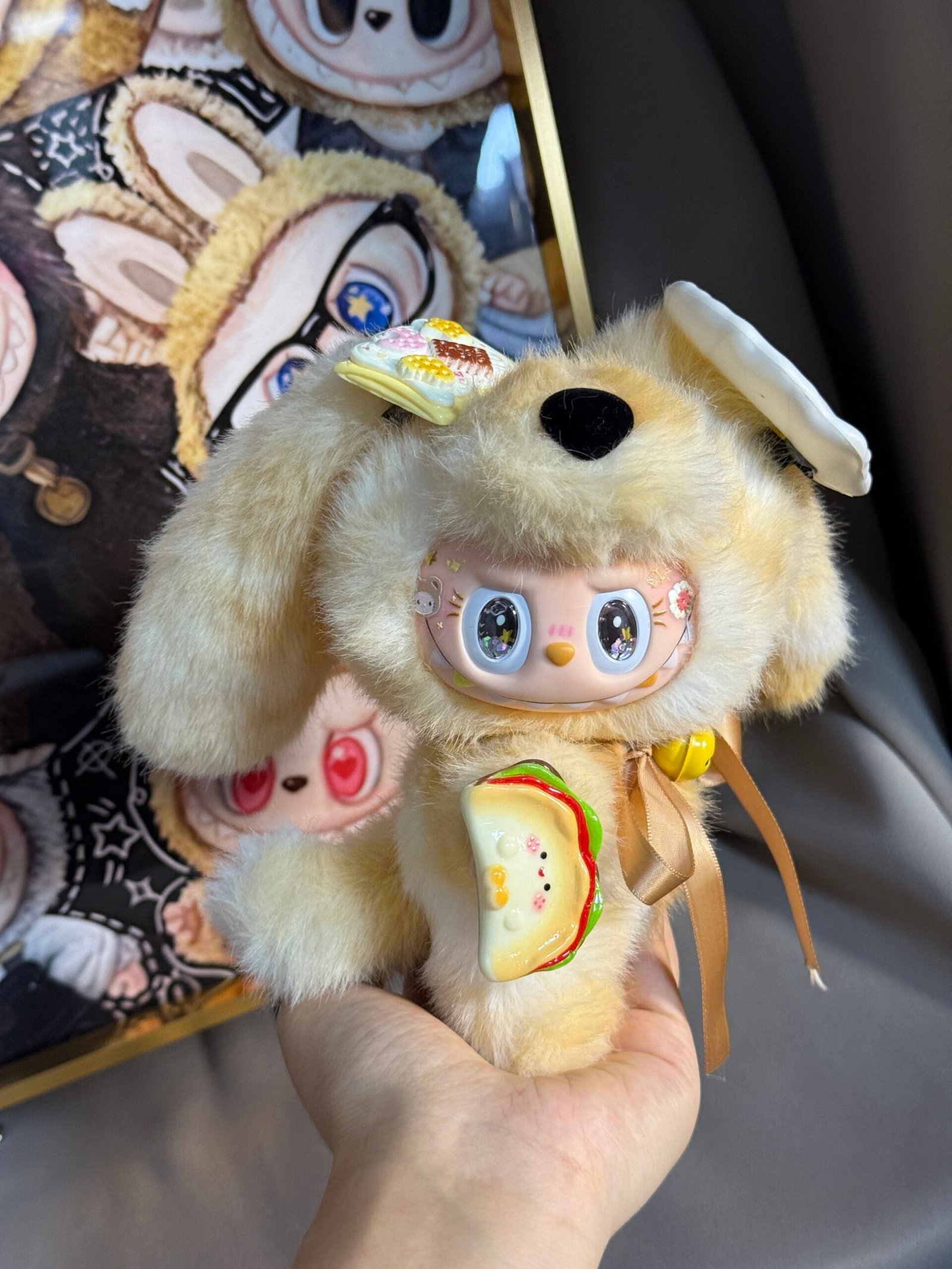 18cm Handmade Custom yellow puppy Labubu vinyl plush pendant18cm Handmade Custom yellow puppy Labubu vinyl plush pendant